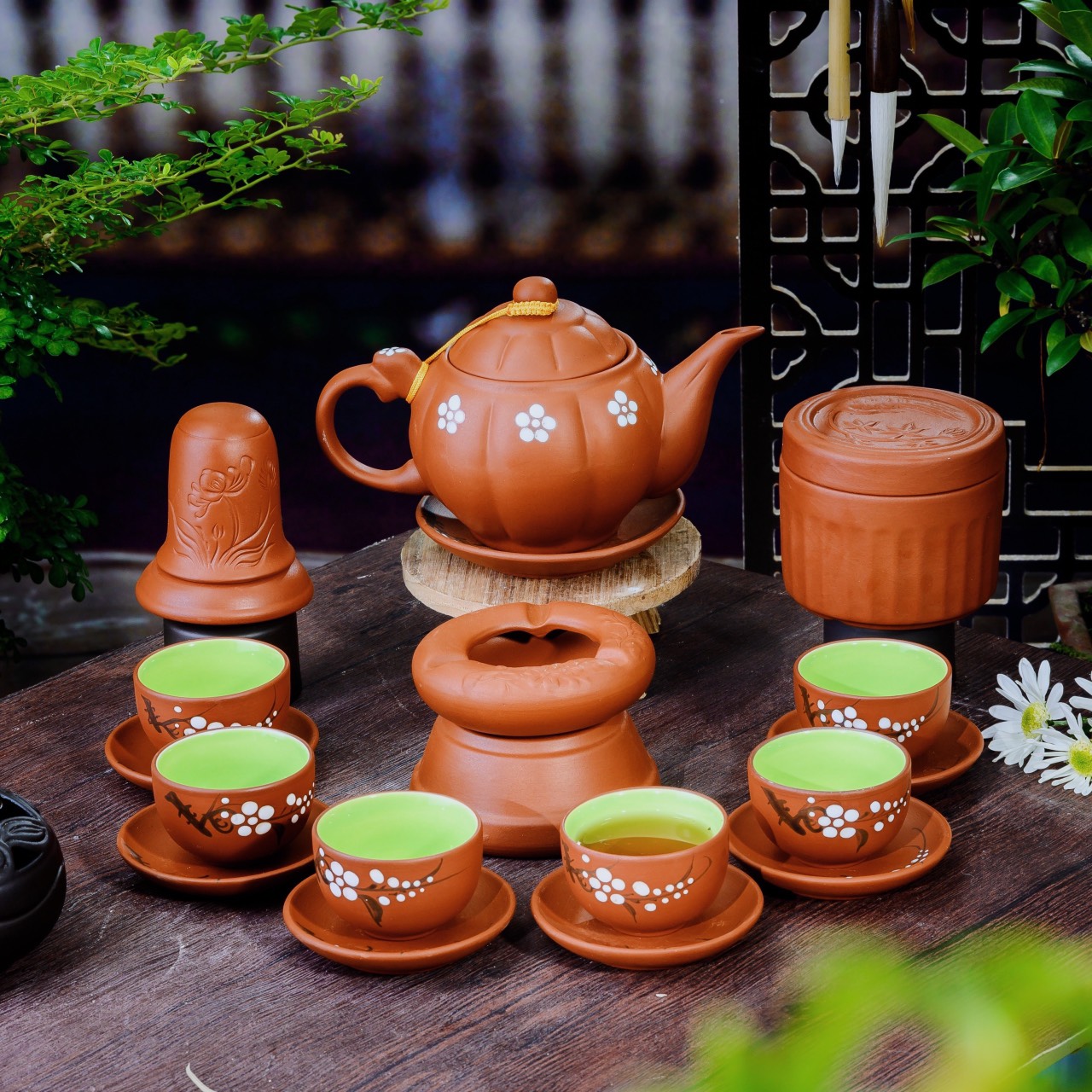Bộ ấm trà vẽ mai trắng đơn giản